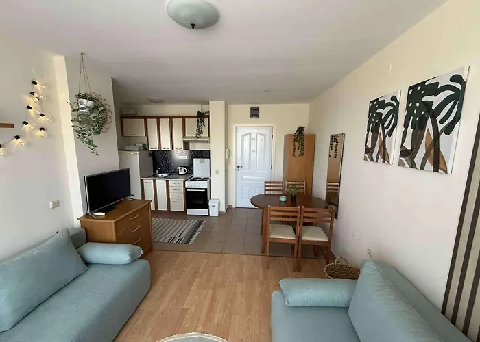 Les appartements Fort Noks 2Kk Na Sunny Beach vient avec une kitchenette où les hôtes peuvent préparer leurs propres repas. Profitez de votre séjour sur une terrasse.